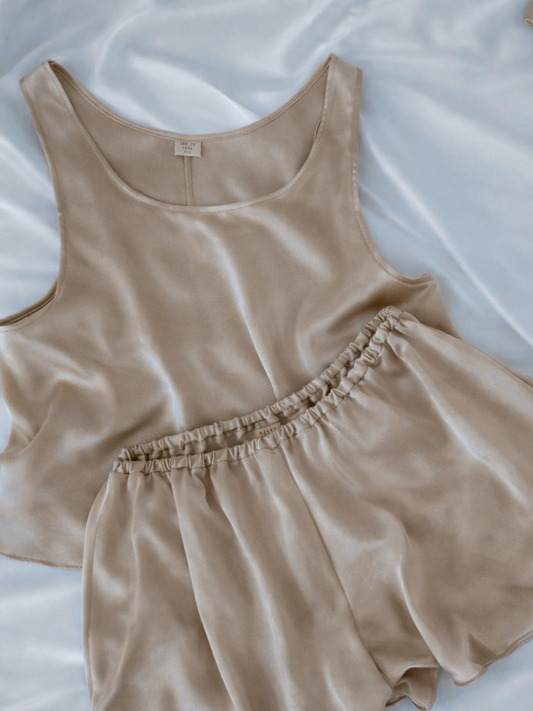 Pijama Seda - Short y Polera CAFÉ CLARO