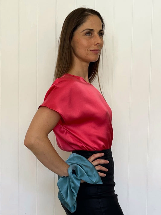 AgotadoBLUSA DE SEDA ROJO FRAMBUESA