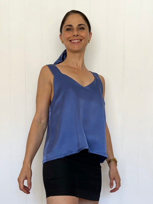 BLUSA DE SEDA ESCOTE EN V AZUL MARINO