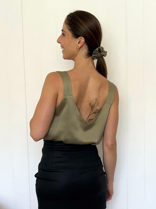 BLUSA DE SEDA ESCOTE EN V VERDE MUSGO