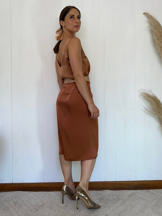 AgotadoFALDA MIDI DE SEDA TERRACOTA