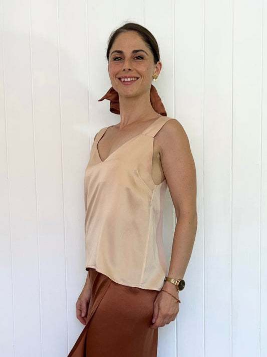 AgotadoBLUSA DE SEDA ESCOTE EN V NUDE